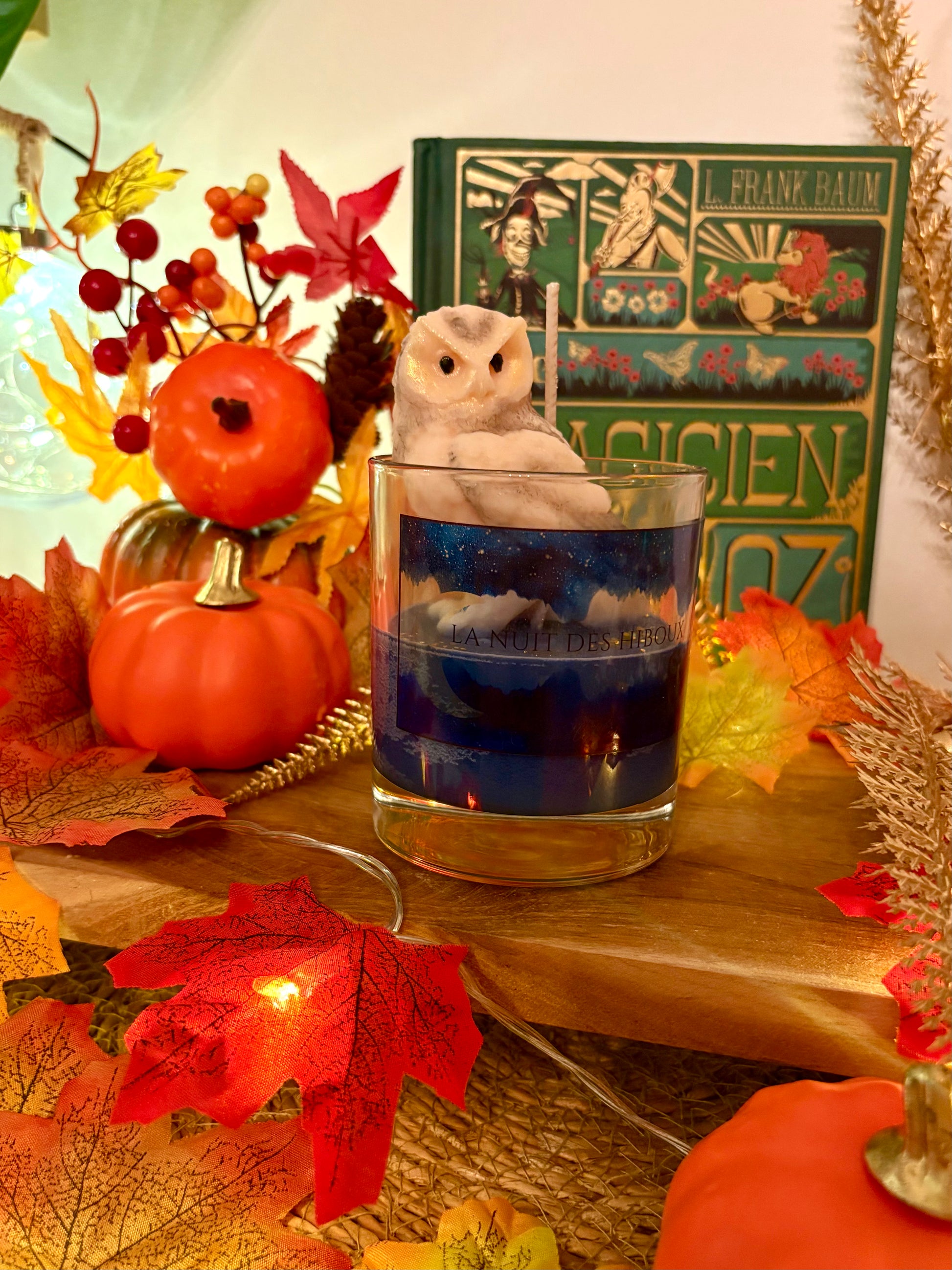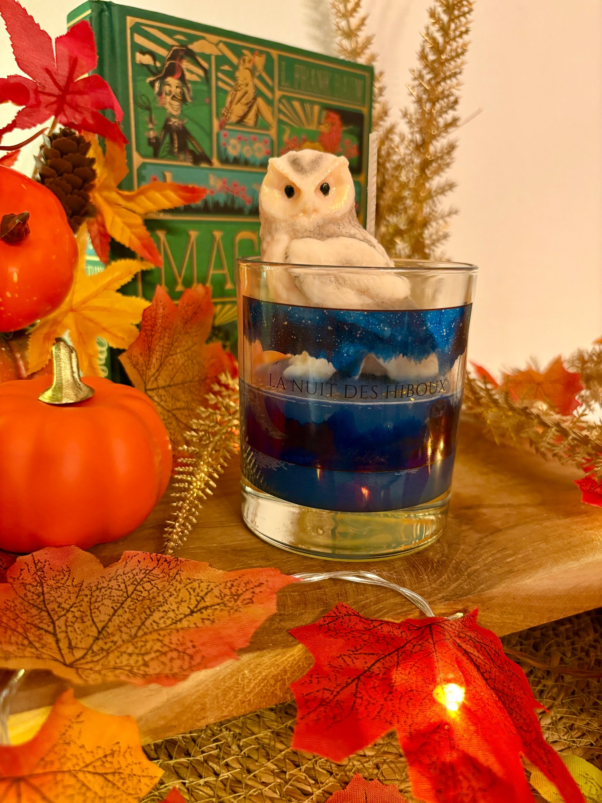 BOUGIE « LA NUIT DES HIBOUX » – UN VOYAGE MYSTIQUE SOUS LES ÉTOILES 🌌🦉